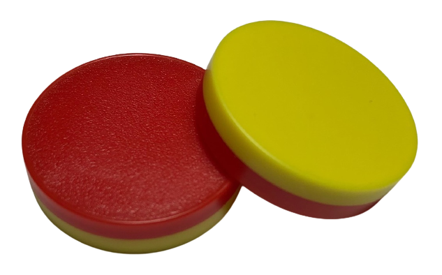 駒の大きさ:直径26mm、スタックカバー(ゲーム拡張具)の大きさ:30mm × 30mm